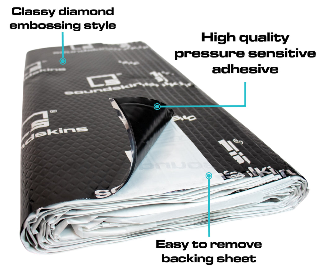 SoundSkins | Classic Black Sheets Sound Deadening Kit Double Layer Mat | SSK-CLASSICSHEETS | Pure Rubber Butyl & Diamond Embossed Foil, 38.75 sq ft
