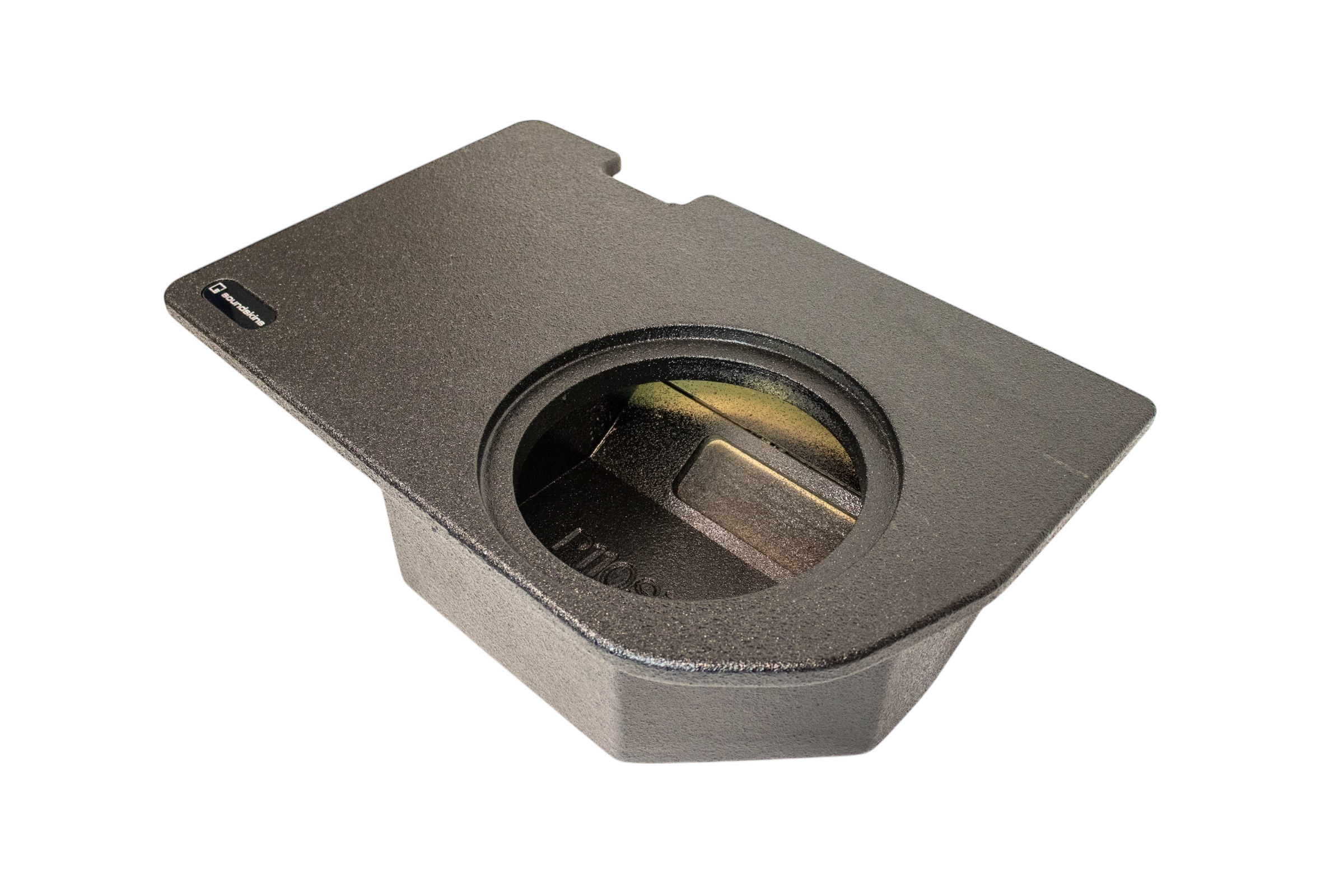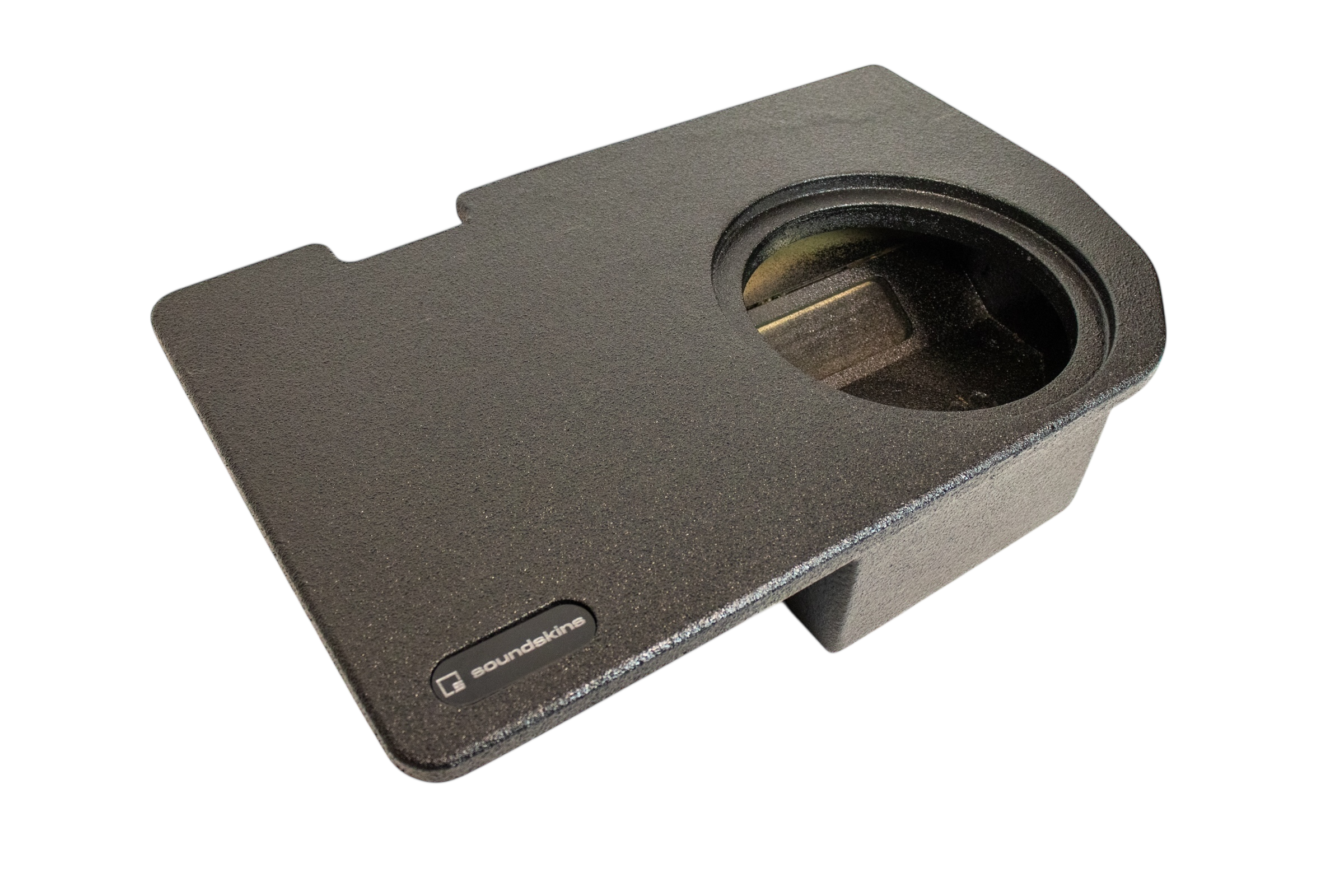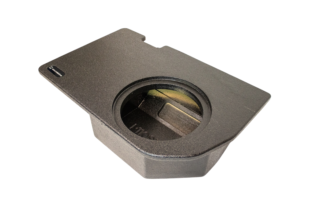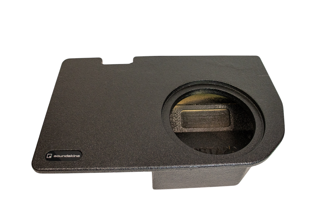 SoundSkins Global Single 10” Sealed Enclosure for 2024+ Toyota Tacoma (Non Hybrid) Crew Cabs fit under rear seat. Each SoundSkins box is coated with a durable bed liner polymer spray to enhance its longevity. These USA-made enclosures are constructed from high-grade, full 3/4" MDF, ensuring robustness and exceptional sound quality.