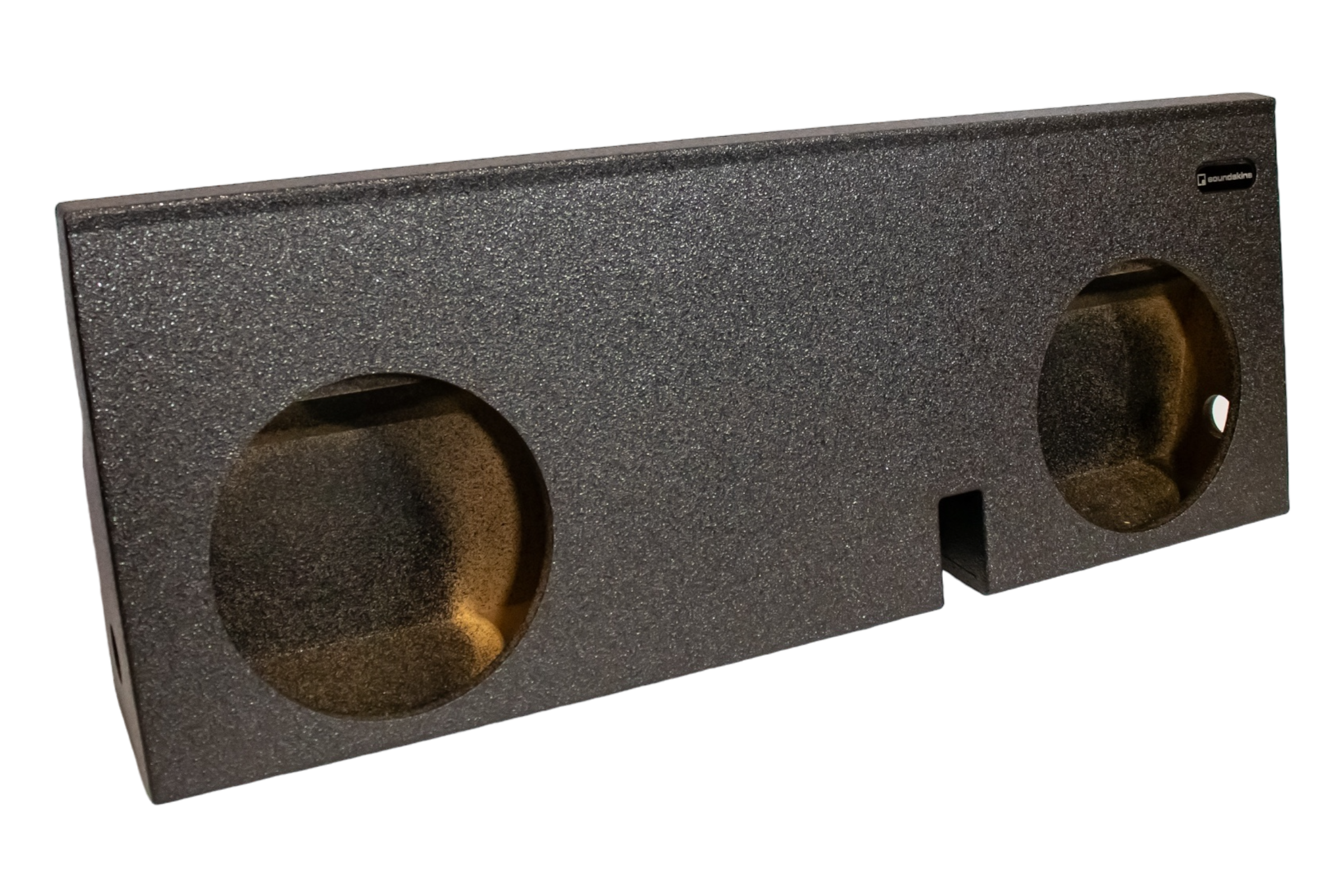 SoundSkins Global Dual 12” Ported Enclosures for 2005+ Toyota Tacoma Crew Cabs (requires rear storage and plastic to be removed). Each SoundSkins box is coated with a durable bed liner polymer spray to enhance its longevity. These USA-made enclosures are constructed from high-grade, full 3/4" MDF, ensuring robustness and exceptional sound quality.